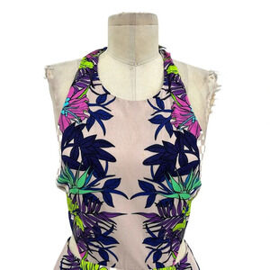 Mara Hoffman Jardin Tie Back Cut Out Romper Purple Floral Check Size 2