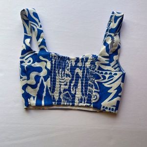 Jini is a lined sleeveless top that hits slightly above the natural waist. Featuring a notched sweetheart neckline, smocking at the back and invisible zipper at the side seam. Pair with the coordinating Anna skirt for a look that can easily be styled for day or night. Updated this season in numerical sizing for a more accurate fit. Made from soft, lightweight hemp in our custom blue and white Thalasa print.