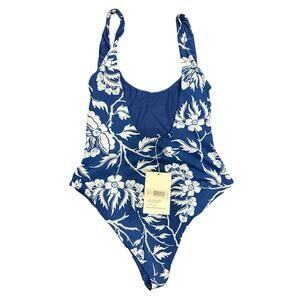 Elevate your swimwear game with this brand new with tags Mara Hoffman Jodi One-Piece Swimsuit in a striking blue and white floral print. Designed for both style and sustainability, this suit flatters with its clean scoop neckline and low back.