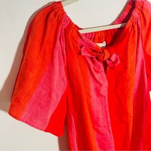 Mara Hoffman Kamala Off the Shoulder Striped Midi Dress Linen Beach Pool Light