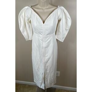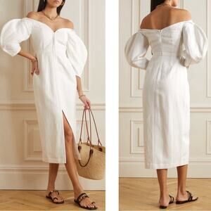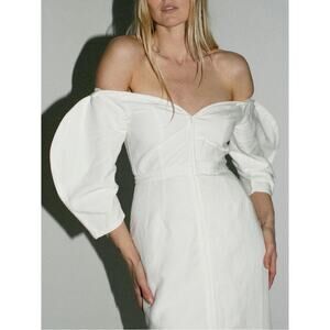Mara Hoffman Leonara Off the Shoulder White Linen Midi Dress Size 0