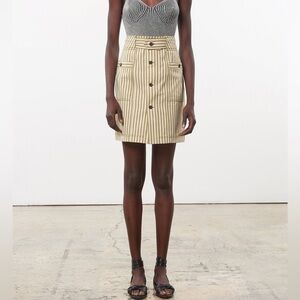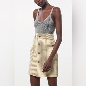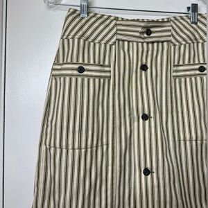 Mara Hoffman Lici Striped Organic Cotton Blend Olive Green Cream Skirt Size 4