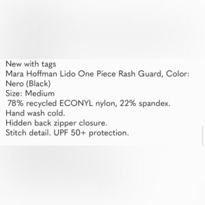 Mara Hoffman Lido One Piece Swimsuit Rash Guard Medium NWT