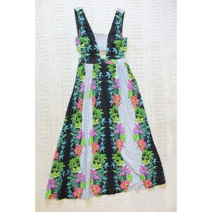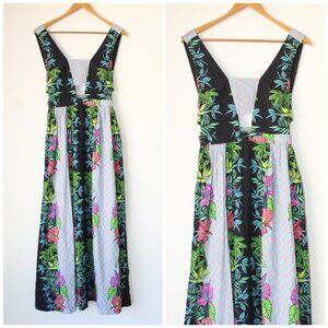 Mara Hoffman Majorelle Floral print Midi Dress Small Checkered Tropical Hawaiian