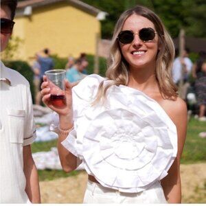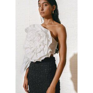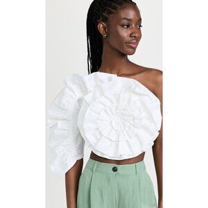 Mara Hoffman Minerva Ruffle Floral Organic Cotton & Linen One Sleeve Top 00 NWT