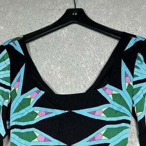 Mara Hoffman Mini Dress Womens Size 8 Blue Black Abstract Dress Open Back