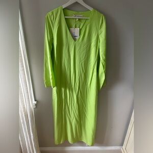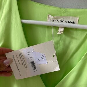 Mara Hoffman Naliyah Neon Green Lime V Neck Midi Dress