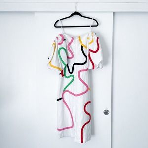 Mara Hoffman Namari off-the-shoulder appliquéd midi dress puff sleeves