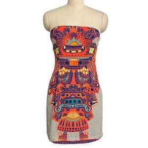 Mara Hoffman Neon Aztec Strapless Mini Cocktail Dress | Size 6