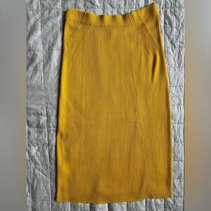 Mara Hoffman 100% Organic Cotton Stretchy Yellow Susan Rib Knit Pencil Midi Skirt Vibrant Cozy Comfy - XL