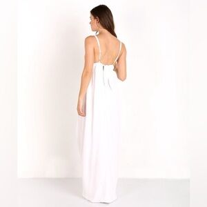 Crochet tie front dress with detailing at bust. Features tie at back and adjustable straps. Note: each piece has been individually hand crafted and may vary.