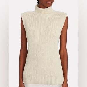 Mara Hoffman Simona Vest in Cream, X-Small: This creamy sweater easily leans preppy, minimalist, or cool with the right styling. It has a classic snug turtleneck, a sleeveless body, and a slightly boxy, slouchy fit. It’s knit from a seasonless blend of GOTS-certified organic cotton and Lycra (just 3 percent) for a soft hand-feel with a touch of stretch.97% organic cotton, 3% lycra.