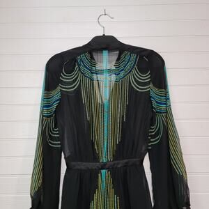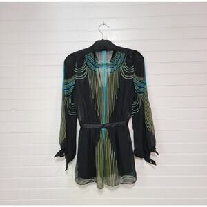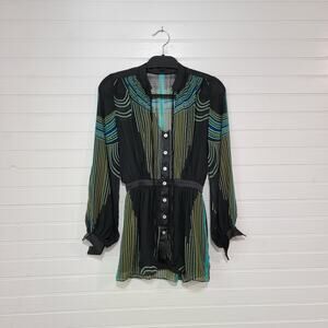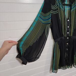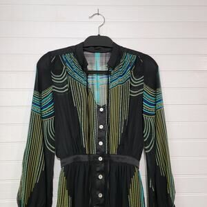 Mara Hoffman Size XS 100% Silk Blouse Oversized Geometric Button Balloon Sleeve