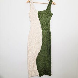 Mara Hoffman Sloan Popcorn Dress in Green Cream Small