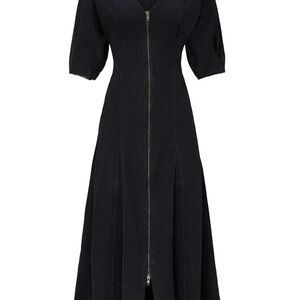 Chic Mara Hoffman black dress with long sleeves and a sexy zipper in front. She’s goth, she’s grunge, she’s designer. Goes many style directions.