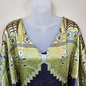 Mara Hoffman Y2K Silk Dress Shift Kimono Mini Short Art Deco Designer Womens M