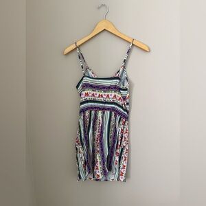 Keywords: Mara Hoffman, J.Crew, romper, multicolor, summer, tropical, casual, parrot stripe, sleeveless, V-neck, adjustable straps, elastic waistband, pre-owned, women's fashion, one-piece.