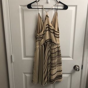 EUC- Draped brown and cream striped dress. Matching belt. Worn only once.