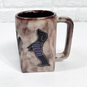 Mara Mexican Stoneware Art ~ Pottery Coffee tea mug ~ Dogs in Shirts Brown