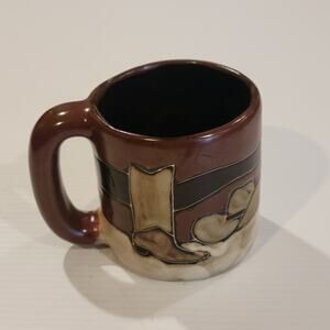 Mara Mexico Pottery Large 16oz Mug Cowboy Hat boots Two Toned Brown Beige