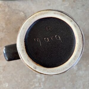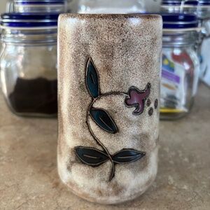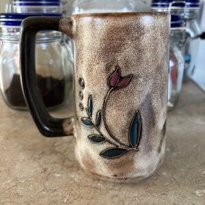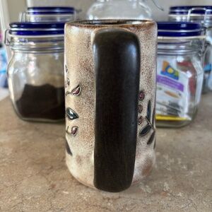 Mara Stoneware Mug Flowers Floral Heavy Tall Stein Leaves Tan Coffee Brown