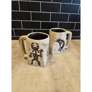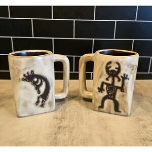 Mara Stoneware Mugs Set of 2 Kokopelli & Warrior Traditional 12 oz. Square Base