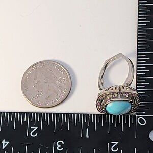 Marahlago Larimar Rhodium Plated Silver Ring Cushion-Cut Stone & Topaz