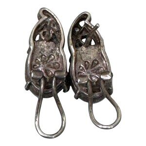 Minor tarnish on metal backings; gemstones and accents intact. Top to bottom = 1 inch.
