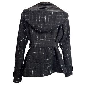 Maralyn & Me Double Breasted Pea Coat Tweed Black Plaid Jacket