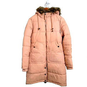 Maralyn & Me Faux-Fur-Trim Hooded Puffer Coat Juniors size M pink mid- length