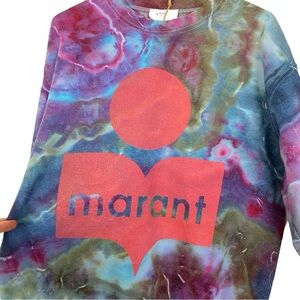Marant Tie Dye Sweatshirt Womens Small Pullover Upcycled Crewneck Blue Pink Red