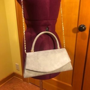 New with tags mixed gray purse. Handle attached as well as option gorgeous gold cross body strap.