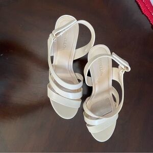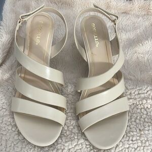 Marbella Cream Strappy Sandals Size 8.5 with Velcro Closure 3 Inch Heel