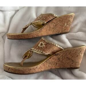 Marbella Wedge Sandal in Cork and Gold by Jack Rogers Size 6.5/6 1/2