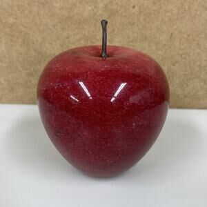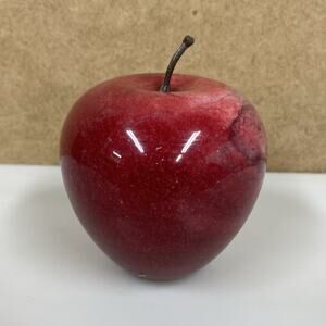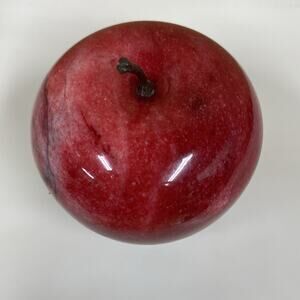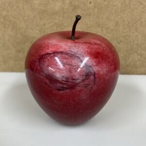 Marble Alabaster Granite Red Stone Apple Paperweight Polished Brown Stem