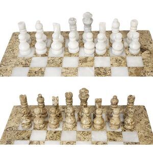 Marble Chess Pieces Only with Storage Tray Coral & White Handmade Gift New