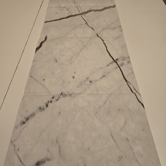 Elegant table runner with a marble pattern. Perfect for dining decor.