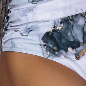 Really pretty colors! Just ordered. Didn’t know what size to get and these are too big. Never worn, sanitary covers still on and in bag. High rise and underwire. L (8/10) XL (12)