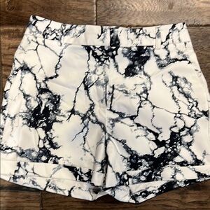 Stylish marble print women's shorts featuring a striking black and white design. Perfect for casual outings or a chic look.