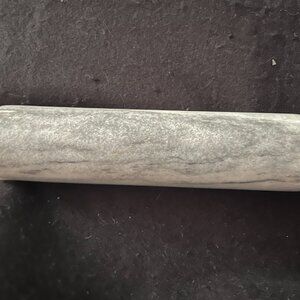 The entire rolling pin, including handles, measures approximately 19 ½”. There are no splits in the wooden portions. The marble roller/shaft is free of chips and/or cracks. Neither have any stains. This item is in very good condition.