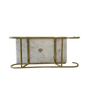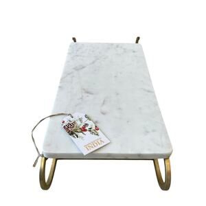 Marble Sledge Holiday Serving Tray 18x8 White & Gold Metal Handmade in India