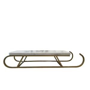Marble Sledge Holiday Serving Tray White & Gold Metal Handmade in India
