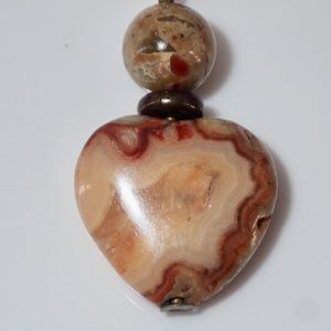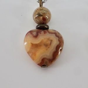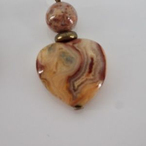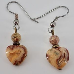 Marble Stone Heart Brown Dangle Silver Hook Earrings 1.5"