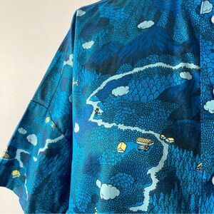 Marble Sud Womens Top Button Up Oversized Boxy Drop Shoulder Bear Mountain Plane