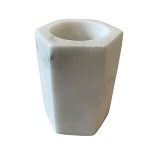 Hexagonal holder is solid matte white marble, embellished with a gold bunny