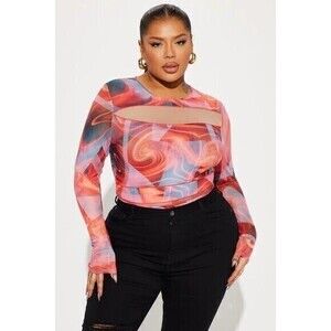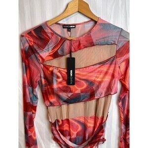 Marbled Crew Neck Stretch Mesh bodysuit Size S RefM010