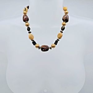 Marbled Faux Stone Necklace Chunky Statement Brown Camel Gold Beaded Jewelry