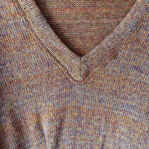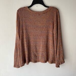 Marbled Knit Sweater Bell Sleeves SZ M V- Neck Stretchy Oversized Boho Cottage