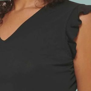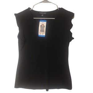 Marc Andrews Ruffle Sleeve V-Neck Black Blouse Size Large NWT
