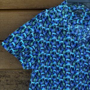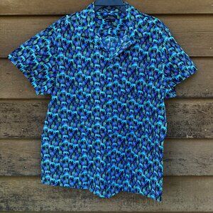 This Marc Anthony luxury button-down shirt features a stylish blue zebra pattern, perfect for any occasion. Designed for comfort and elegance, it's ideal for those who appreciate unique fashion.